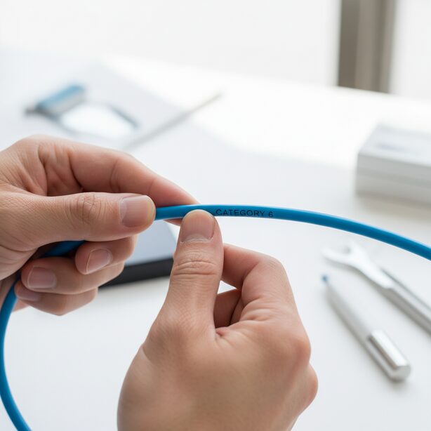 Cat6は内部に十字介在を持つ構造が一般的で、ケーブル外径は約6mm前後。比較的しなやかで、部屋の隅や家具の裏側などにも配線しやすいのがメリットです。