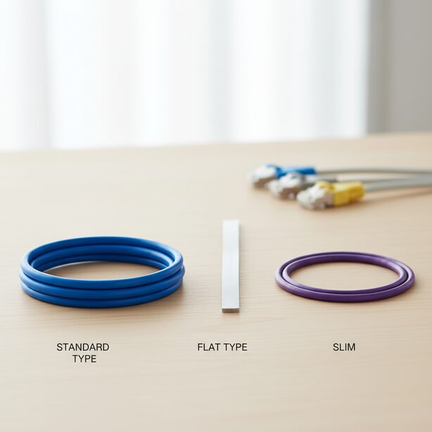 - スリム: スタンダードより細いタイプ。取り回しが良く、ハブ周りなどケーブルが密集する場所の配線に便利です。