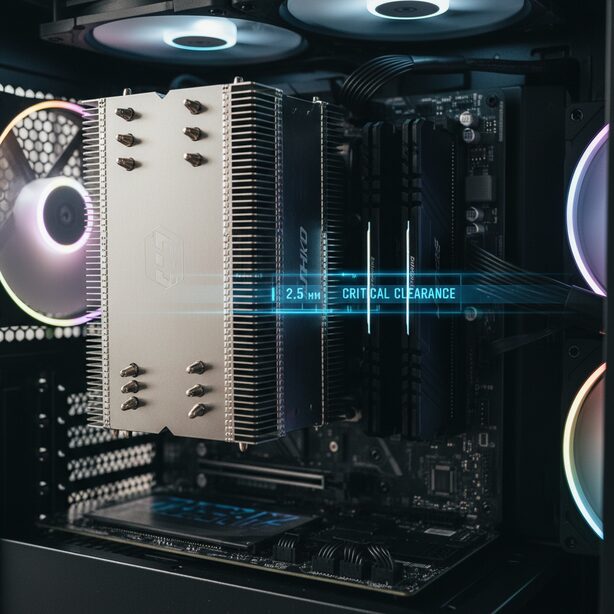 高性能なCPUクーラーほどサイズが大きくなる傾向にあり、PCケースや他のパーツとの物理的な干渉が問題になりがちです。購入前には必ず以下のポイントを確認しましょう。