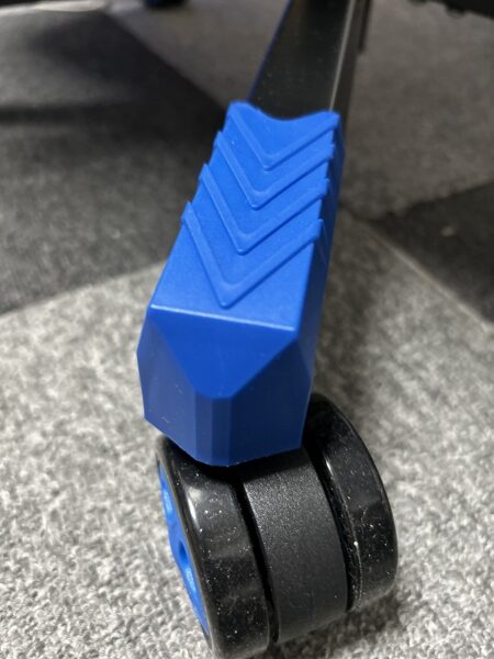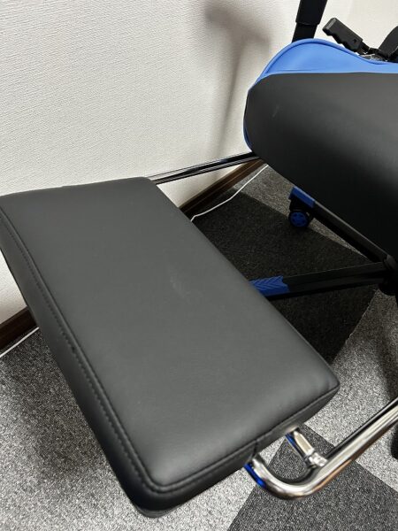 レッグフレーム(脚部)には、足を置いたときに滑らないように滑り止めパッドが付いています。実はこれ、4万円クラスのDXRacerなどにも採用されている工夫で、この価格帯のチェアに付いているのは嬉しいポイントです。