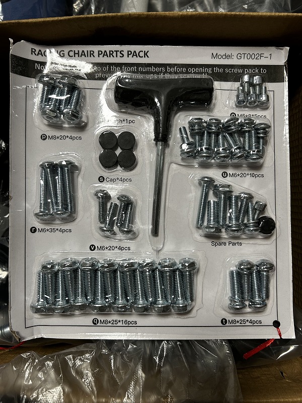 特に嬉しかったのが軍手です!他のメーカーでもAKRacingのような高級モデルには付属していますが、この価格帯で付いてくるのは珍しい心遣い。組み立て作業は意外と手が汚れたり、部品で手を傷つけたりする可能性があるので、これは本当に助かります。