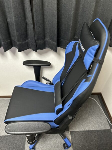 デザインは、まさに「ザ・ゲーミングチェア」といった感じでめちゃくちゃ格好いいです。購入したブルーは鮮やかで、部屋の良いアクセントになっています。
