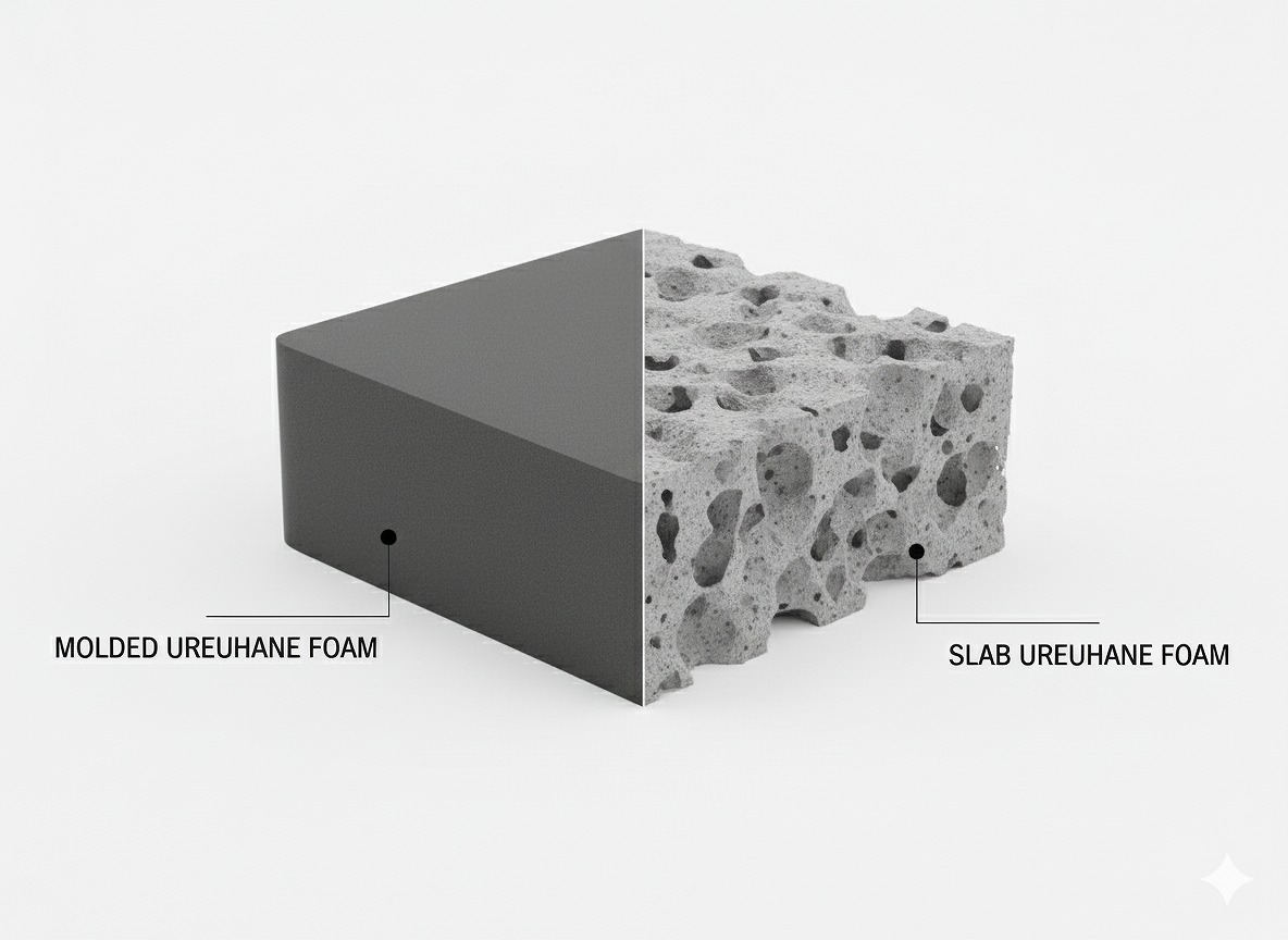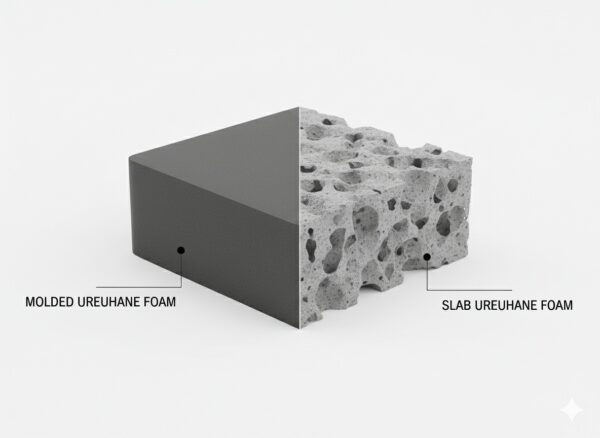 - GTRacing:一般的な「スラブウレタン」を使用。大きな食パンを切り分けるように作るため安価ですが、長く使うと体重がかかる部分が少しずつへたってくることがあります。