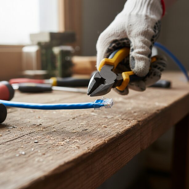 ケーブルを切るときは、思わぬケガをしないように注意してください。滑り止めの付いた軍手を着用し、銅線が飛び散る可能性もあるので、念のため保護メガネがあるとより安全ですよ。