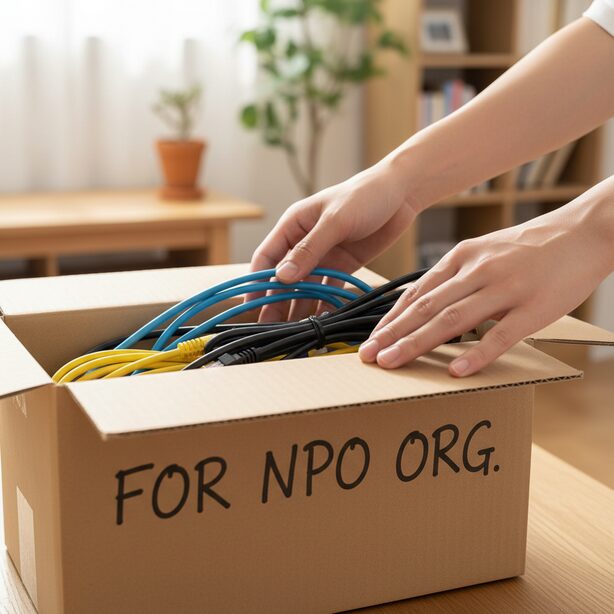 発展途上国や国内の福祉施設へPC関連機器を送る活動をしているNPO法人などが、寄付としてケーブル類を受け付けている場合があります。「パソコン 寄付」といったキーワードで検索すると、そうした団体が見つかりますよ。送料は自己負担になることが多いですが、自分の不要なものが誰かの役に立つ、素敵な選択肢ですよね。