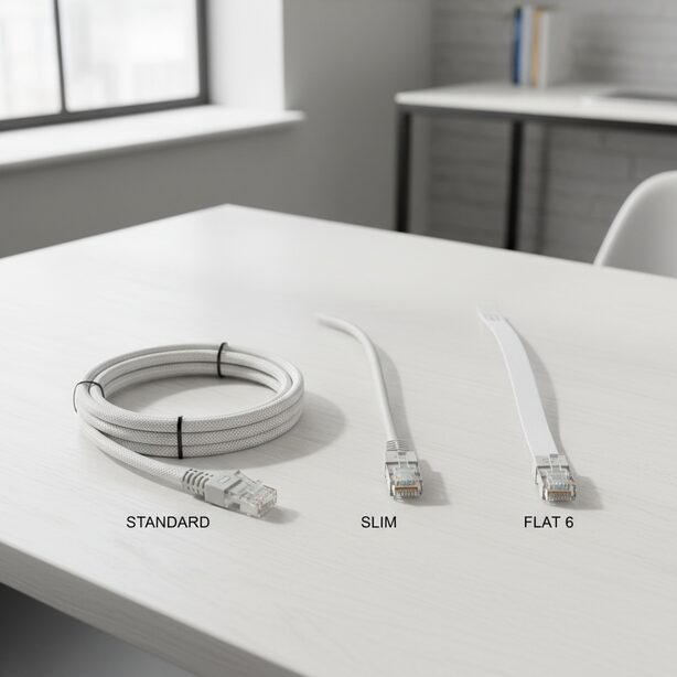 契約している光回線の速度が基本です。1Gbps回線ならCAT6、10Gbps回線ならCAT6Aを選びましょう。将来を見越してワンランク上のカテゴリを選ぶのも賢い選択です。 - 「形状・太さ」で選ぶ(配線場所を考える)