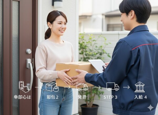 「宅配買取ってなんだか難しそう…」と感じるかもしれませんが、実はとっても簡単。以下の4ステップで完了します。古物営業法という法律に基づき、手続きには本人確認が必要になりますので、準備しておきましょう。