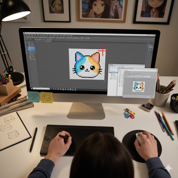 まず、カーソルの元になる画像を画像編集ソフトで作成します。一般的なサイズは32×32ピクセルで、背景を透過させておくのがポイントです。PNG形式で保存するのがおすすめです。