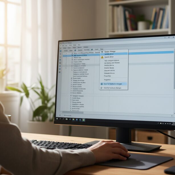 ここでデバイス名の横に「↓」(下矢印)マークが付いている場合はデバイスが無効になっています。そのデバイスを選択してEnterキーを押し、プロパティ画面で有効にしてください。「!」(感嘆符)マークが付いている場合は、ドライバーに問題がある可能性が高いです。