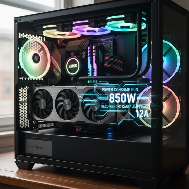 - デスクトップPC: 特に高性能なゲーミングPCは消費電力が大きく(500W~1000W以上)、付属ケーブルも12Aや15Aといった大電流に対応した太いものが使われます。